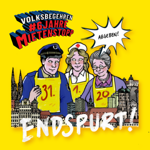 Seit drei Monaten sammeln die Initiatoren und Unterstützer Unterschriften für das Volksbegehren #6JahreMietenstopp – und setzen nun zum Endspurt an! Bis 31. Januar 2020 liegen die Unterschriftenlisten noch in der Geschäftsstelle des DMB Mieterverein München in München und bei den teilnehmenden Partnern in ganz Bayern aus. Ebenso lang können die Unterschriftenlisten noch zurückgeschickt oder abgegeben werden (Adresse: Mieterverein München, Sonnenstraße 10, 80331 München).